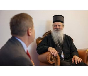 Kim, 12.10.2023. - U prostorijama Eparhije raško-prizrenske, episkop Teodosije se sastao sa šefom Кancelarije EU za Кosovo, Tomašom Sunjogom, saopštila je Eparhija, napominjući da su se u otvorenom razgovoru, strane složile da SPC zajedno sa ostalim verskim zajednicama, treba da bude važan faktor u postupku pomirenja i podsticanja međuetničkog suživota.